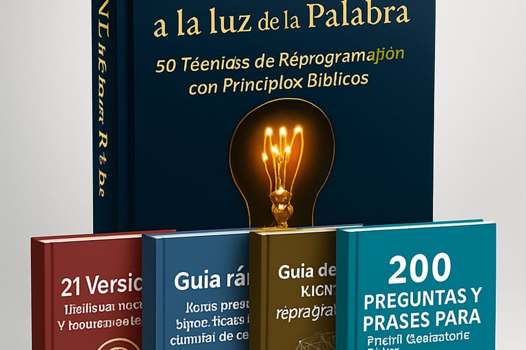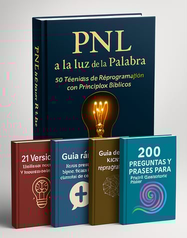 Guía principal que integra la Programación Neurolingüística con los principios bíblicos. Incluye 50 técnicas prácticas para resignificar experiencias, romper creencias limitantes, crear anclas espirituales y afirmar la identidad en Dios. Un manual único que une neurociencia y fe cristiana para transformar vidas con propósito.